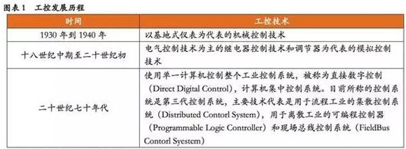 工業(yè)過(guò)程大致分為連續(xù)過(guò)程工業(yè)、離散過(guò)程工業(yè)、間隙過(guò)程工業(yè)三大類(lèi),隨著工業(yè)自動(dòng)化技術(shù)的發(fā)展,三類(lèi)工業(yè)過(guò)程衍生出過(guò)程控制、離散控制和間隙控制。1930年以來(lái),工控技術(shù)經(jīng)歷了三個(gè)主要階段。