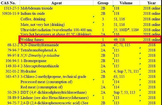 在當(dāng)前的評估中,焊接煙霧和UV輻射被歸類為“對人類致癌”(第1組)。