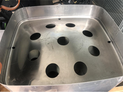 鋁合金油箱焊接部分主要包括封頭雙環(huán)峰焊接,油箱內(nèi)部隔板,俗稱防浪板,注油嘴等部位。其中油箱內(nèi)部隔板目前自動(dòng)化焊接普及率較低,大多數(shù)廠都是人工在焊接,效率與焊接質(zhì)量較低,已漸漸滿足不了汽車主機(jī)廠家的要求,同時(shí)在同行之間的競(jìng)爭(zhēng)力也是越來(lái)越低。