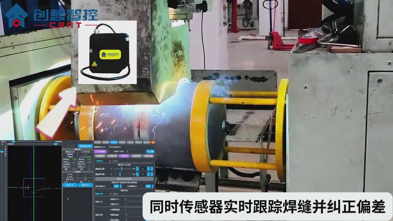 創(chuàng)想智控自主研發(fā)的焊縫自動跟蹤系統(tǒng),采用激光全程自動跟蹤焊接,只需簡單操作,不僅能解決由于卡具的精度和使用過程中的磨損引起焊縫位置不精確問題,還能解決由于人工失誤導(dǎo)致的焊偏問題,提高了產(chǎn)品質(zhì)量,而且效率高,已在壓力容器生產(chǎn)制造行業(yè)中廣泛投入使用。