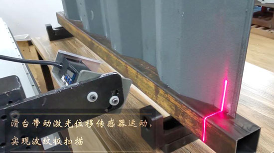 滑臺帶動激光位移傳感器運動,實現(xiàn)波紋板掃描。