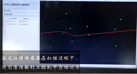 激光位移傳感器在掃描過程中,將圖像傳輸?shù)焦た貦C中存儲運算。